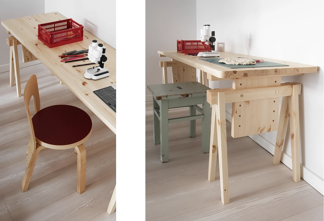 But we also love the scent of freshly cut wood. We want to elevate the value of domestic spruce and pinewoods by using them to create beautiful objects.